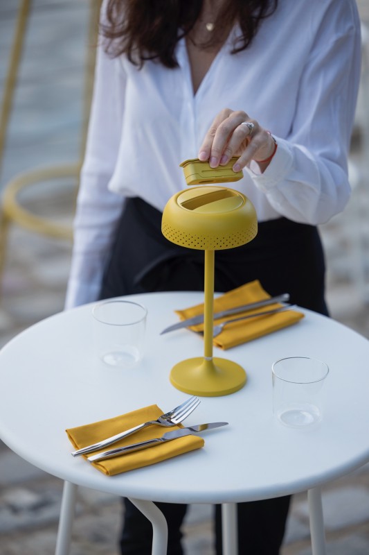 La lampe Lido de chez Maiori est une lampe de table sur batterie rechargeable, existe en 5 couleurs charbon, blanc, taupe clair, jaune moutarde, vert menthe, possède 3 intensités lumineuses, a 2 batteries interchangeables pour un éclairage durable et économique, pour une lumière éternelle en permanence